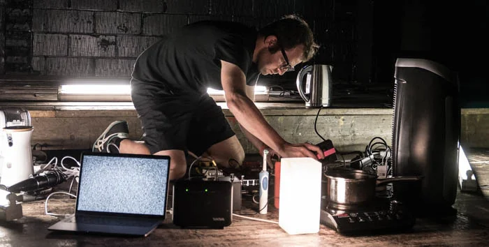 For the Tempting Failure festival Slota created a sound performance that used the electromagnetic radiation of household objects to create a harsh soundscape.