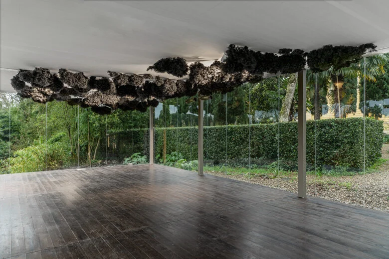 Suspended, soft, tender, Clouds (2019) linger in the room ever-present, delicate and overwhelmingly powerful. Full in the weight, the silence of the space they hold collectively is un-ignorable. Hair holds the DNA of a person, of a people. The remains, the cut parts, the fragments are weighty in their evidence. There is lightness and simultaneously a power, a deep burden of proof. In a world on fire Barrett's work consistently holds the space for the violently erased. Rain-filled clouds; a life-giving potential or smoke bearing the weight of the past, Barrett's work, is a black space. A space beyond time, beyond past and present. A collective and individual space that is shape shifting and fluid. (What the hell she doin! Collective)