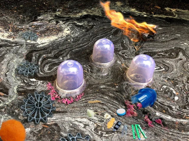 The performative installation of JA! (Julia Neuenhausen and Astrid Menze) begins with the large discharge of the black hole, which releases a bunch of strange, scattered remains of everyday life. In the middle of a marked "battlefield", the shapes are put together again and again in new conditions, piled up, rejected and newly explored. Wordlessly and intuitively, the artists develop explosive compositions. Meanings are withdrawn and newly connoted, associative orders or clusters, scattering and densification develop a dynamic, whirring gusts, which are then structured again. The formal replaces the content and becomes an impenetrable vault again. The movement between things and their possibilities builds up like a chaotic wave that then subsides again. Depending on the state of the day and the collection of objects, the performance ends after mutual agreement. The performance is among others designed for a mobile camera and will be broadcast LIVE. The shop window of the ZF_Projektraum also allows pedestrians walking past an insight into the twilight.