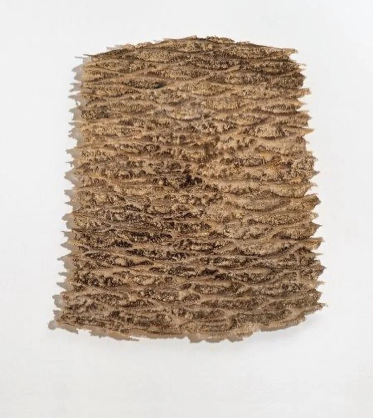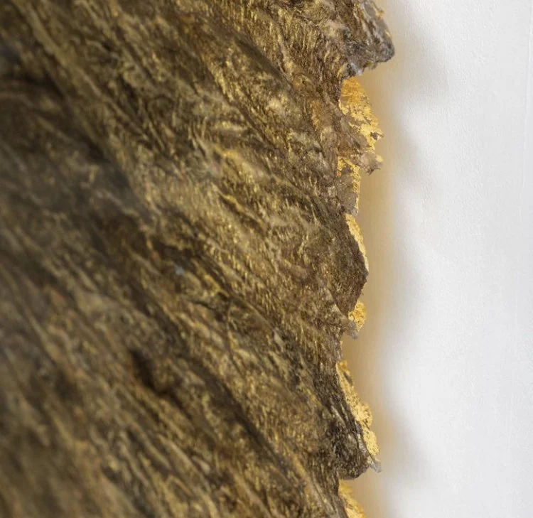 Depression Elevations Tree Hug, 2022, Pigmentierter Polyurethanguss UV-beständig und Blattgold, 137 x 167 x 5 cm by Bernd Borchardt