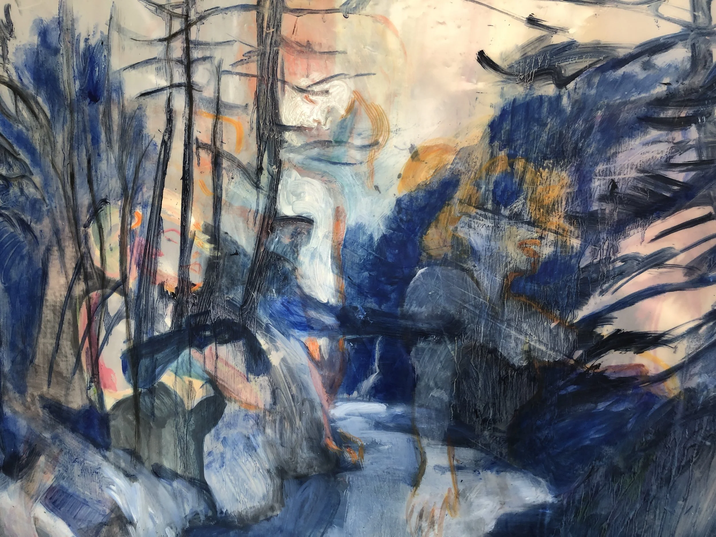 Stefanie Denz is a painter, installation maker, and member of a collaborative dance group, interested in how things move from one area to another; the relationships between things being in exchange and having influence on each other. This process can also be seen in nature and was something she observed and loved growing up on Vancouver Island and later as a tree planter in BC. The experience of directly connecting with what is in front of her presented a world of details and sensations unique to that place and moment, however mundane. Through painting Stefanie reaches into the edges of nature, from her backyard to local parks, experiencing the variety, chaos, mystery, and emotion of wildered-ness as a realm humans are deeply connected to.